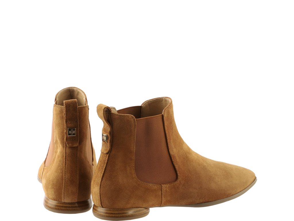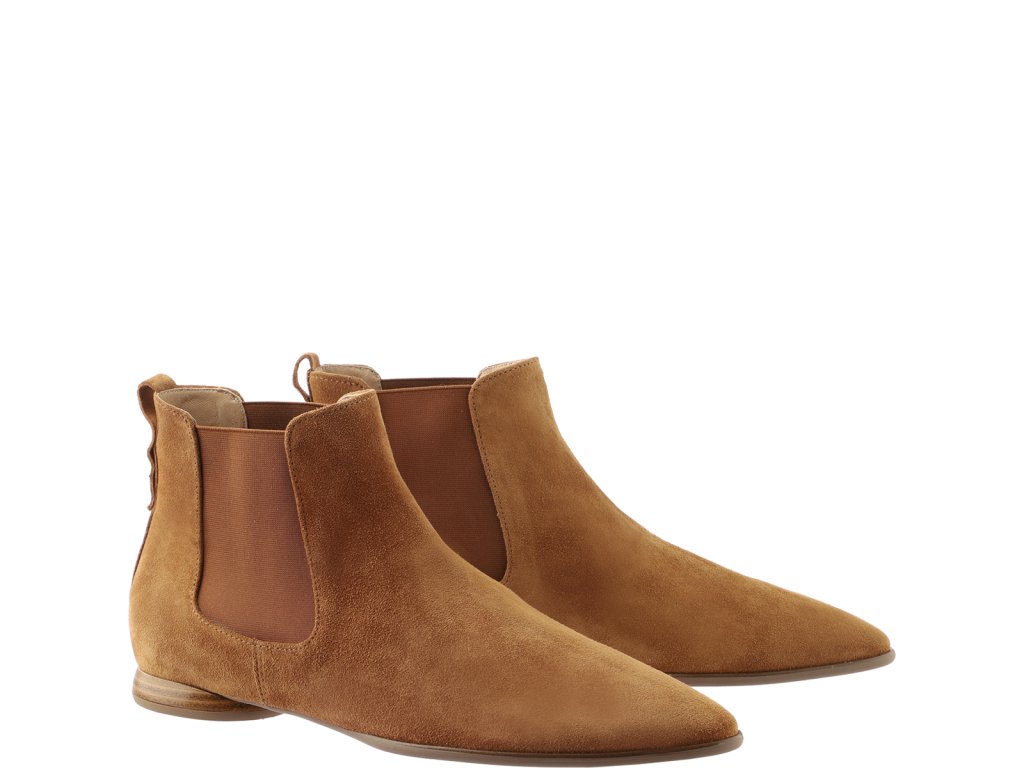 Dámska členková obuv JASPER. Obuv je vyrobená z brúsenej kože, má špicatú špičku a okrúhly podpätok s výškou 15 mm. Po bokoch je guma, ktorá uľahčuje obúvanie a vyzúvanie obuvi. Obuv má protišmykovú podrážku.