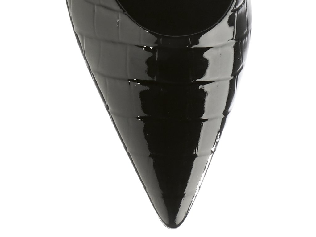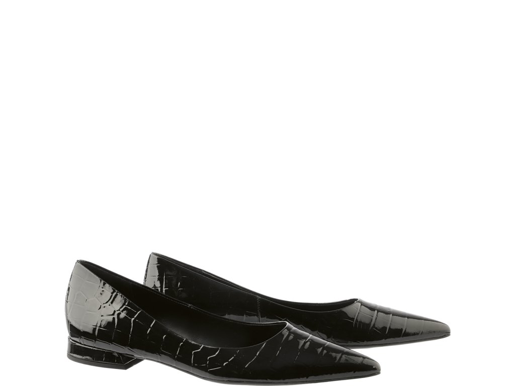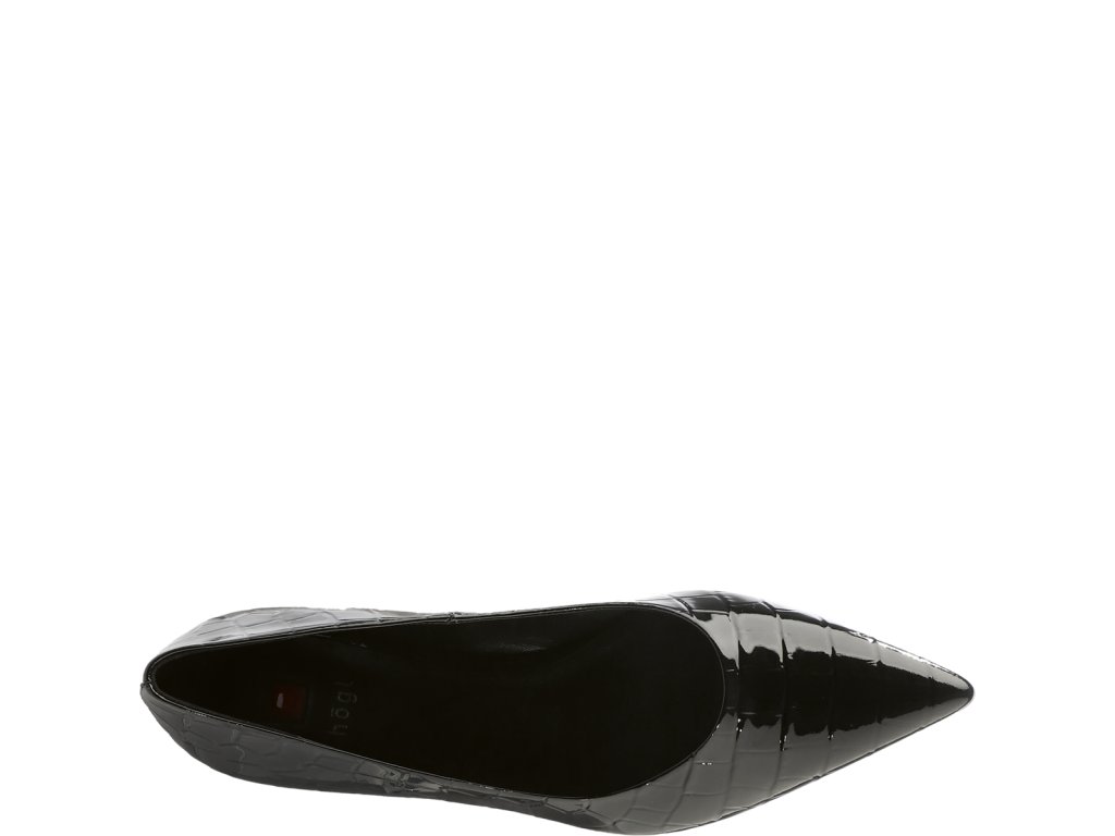 Dámske lakované baleríny Hogl v čiernej farbe. Obuv je vyrobená z lakovanej kože s krokodílím vzorom a má nízky blokový podpätok s výškou 20 mm.