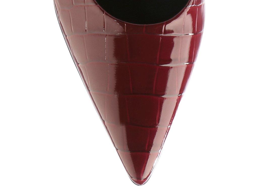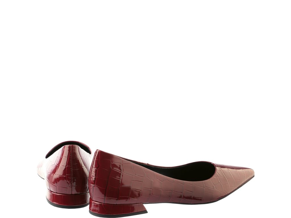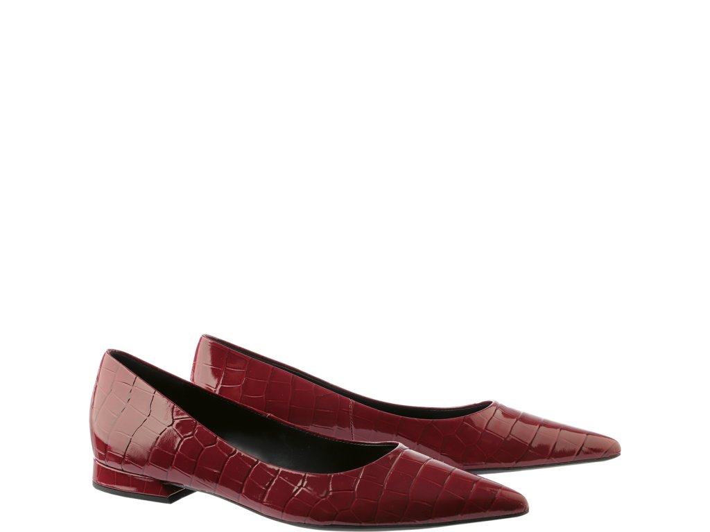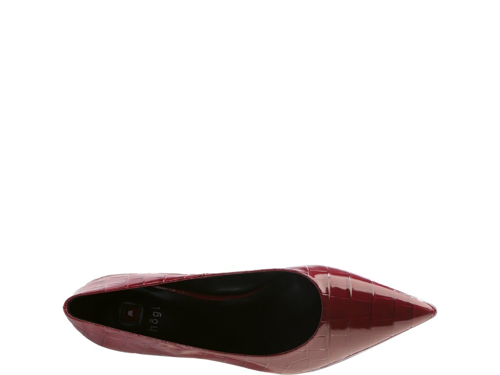 Dámske lakované baleríny Hogl vo vínovej farbe. Obuv je vyrobená z lakovanej kože s krokodílím vzorom a má nízky blokový podpätok s výškou 20 mm.