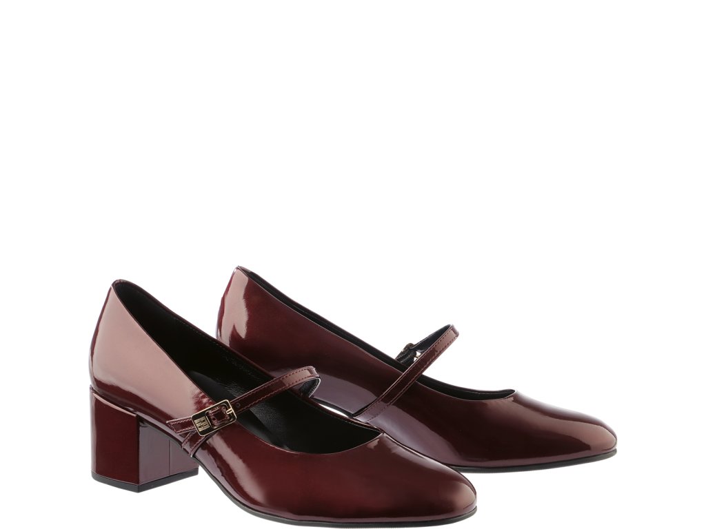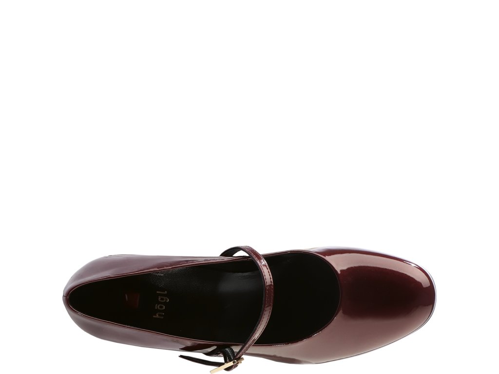 Dámske lodičky Hogl z lakovanej kože na stredne vysokom blokovom podpätku. Podpätok je vysoký 55 mm. Obuv má opasok cez priehlavok, a tak skvele drží na nohe. Lakovaný povrch dodáva obuvi elegantný a luxusný vzhľad.