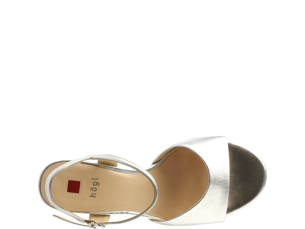Strieborná senzácia: Vďaka kombinácii mäkkej kože s metalickým povrchom a ženskou siluetou sú naše sandále na podpätku „Meg“ stelesnením očarujúcej elegancie. Vysoké, kožou potiahnuté podpätky vyžarujú sebavedomie, zatiaľ čo tenké remienky prispievajú k ženskému nádychu. Polstrované vložky Softline zaisťujú úroveň pohodlia, ktorá sa cíti ako čistá ľahkosť. Tešte sa na elegantný pár letných sandálov na podpätku, ktoré sú skvelou voľbou na svadbu alebo letnú párty; vďaka ich vynikajúcemu pohodliu pri nosení môžete v týchto topánkach bez námahy tancovať celú noc. Högl vyrába aj tieto sandále na metalickom podpätku udržateľným spôsobom.
