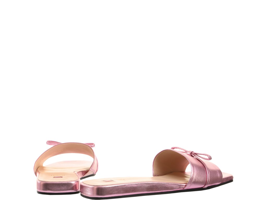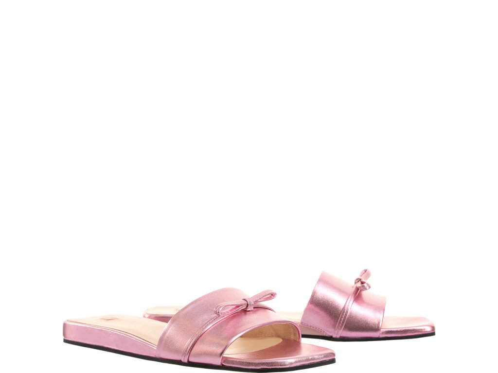 Dámske šľapky Högl z hladkej jahňacej kože s metalickým povrchom. Obuv má protišmykovú gumovú podrážku s ľahko zdvihnutou pätou (10mm). Malá mašľa im dodáva elegantnosť a šarm.
