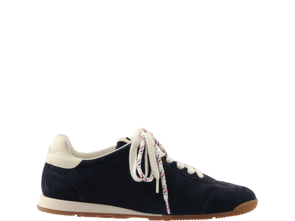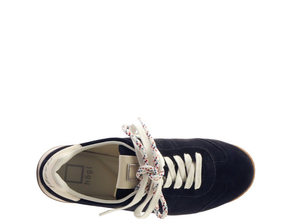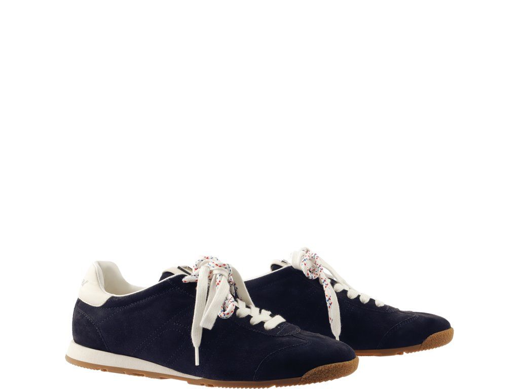 Spomienky na more a retro atmosféra: zvoľte si naše tenisky „Kai“ pre nadčasový retro štýl s námornými akcentmi. Tmavomodrý semiš sa snúbi s detailmi aplikácie z bielej hladkej kože, ktoré zvýrazňujú športový vzhľad. Ploché podrážky tiež prispievajú k ich ležérnemu štýlu. Voliteľné dvojité šnurovanie je očarujúci a hravý detail, ktorý je zároveň ďalším pútačom pozornosti – jedna sada je biela a druhá má červeno-modrý vzor. Vďaka vyberateľným vložkám z pamäťovej peny sú neuveriteľne ľahké, a preto sú vhodnou voľbou na celodenné nosenie, zatiaľ čo priedušná bavlnená podšívka zaisťuje prvotriedne pohodlie aj v horúcich dňoch.
