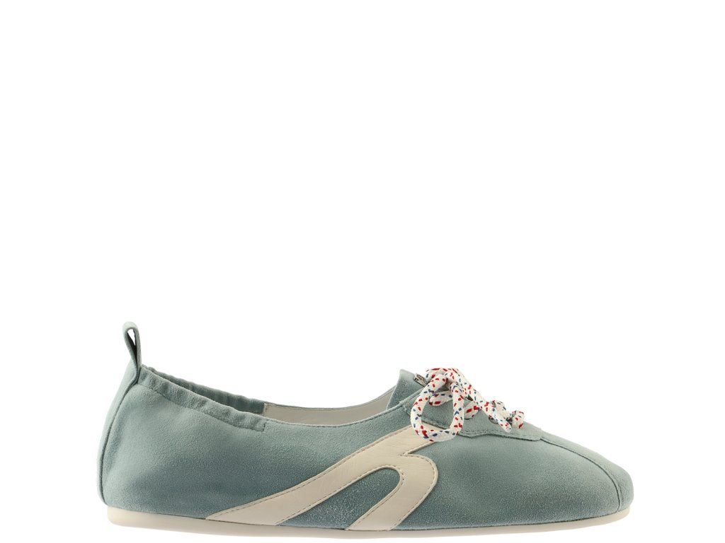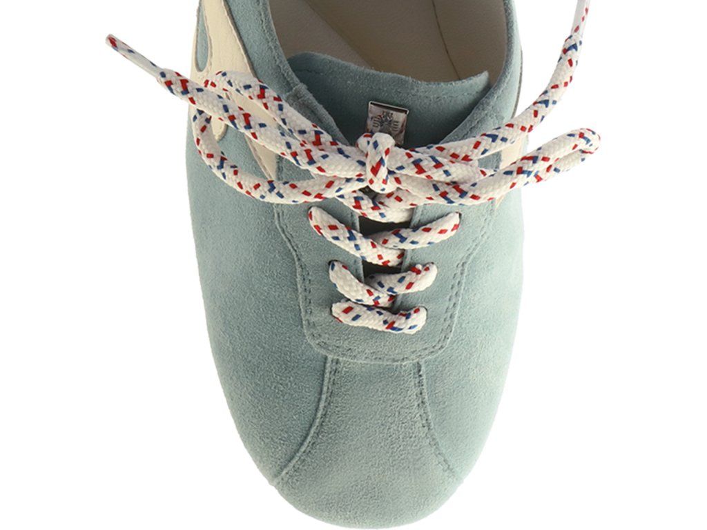 Naše „sneakeriny“ dodávajú letu svieži atletický nádych – kombinácia tenisiek a balerínok vytvára úplne novú siluetu, ktorá je neuveriteľne všestranná. Tieto dámske topánky sú vyrobené z krásne mäkkého zamatového semišu a sú vyrobené udržateľným spôsobom. Dizajn sa vyznačuje odtieňmi modrej a bielej v kombinácii s ležérnymi detailmi a ženským šarmom. Decentné ploché podrážky, šnúrky a ľahké riasenie na pätách definujú dizajn. Tieto topánky, vyrobené exkluzívnou technikou Sacchetto a opatrené pamäťovou penou, kombinujú ženský strih s výnimočným pohodlím. Mäkký a flexibilný strih sa dokonale prispôsobí vašim nohám – to je elegancia s príjemným pocitom.